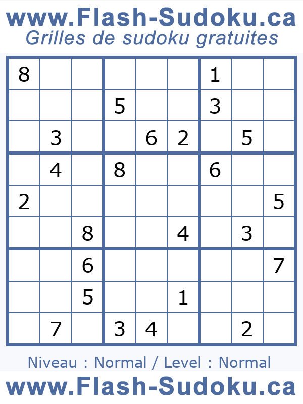 At present on Flash-SudokuSudoku: The goal consists in filling the grid which contains 81 boxes. There are 9 sectors, 9 columns and 9 lines. You must place the whole of the numbers from 1 to 9 without it being repeated in a column, line or sector. Technics